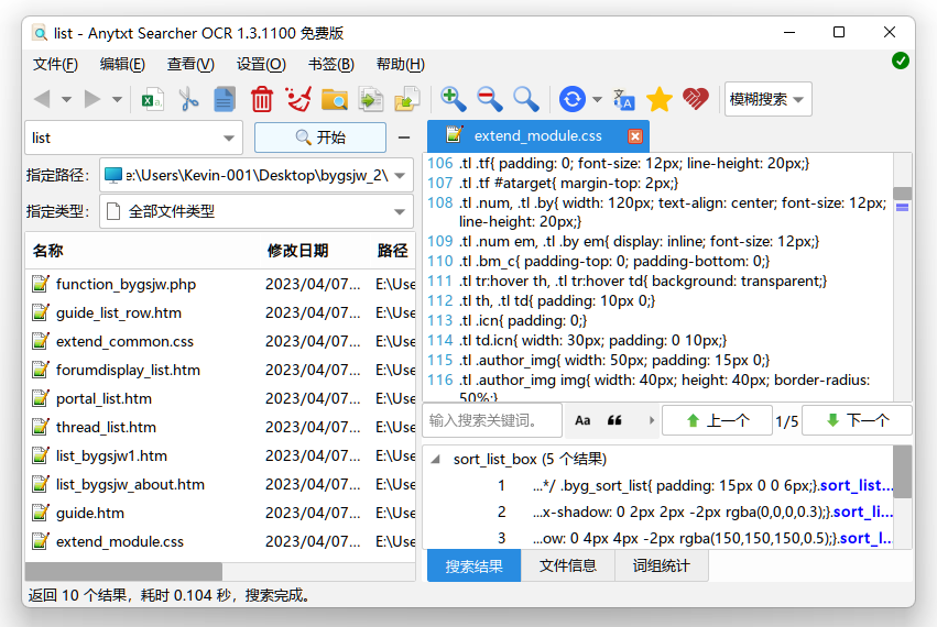 免费下载地址:高速下载 AnyTXT Searcher是款效率高的全文搜索工具,在最短的时间内搜索整台电脑所有硬盘里的文件,以最快的速度找到你需要的,通过文本内容来查找出文档的位置,支持搜索各种 TXT 文本、Office、PDF 文档、电子书以及各种程序源代码的内容。 AnyTXT Searcher功能基于文本的搜索引擎,可以立即显示包含您键入的文本的所有文件,无论格式如何 支持模糊搜索与全字匹配两种模式,您可以根据需要选择 您可以自定义选择要检索的磁盘驱动器 用户可以设置搜索的文件类型,支持PDF、Doc、PPT、Xls、Docx、TXT等多种格式 文件索引管理器,可以帮助用户检索文件 AnyTXT Searcher特色简单,几乎一体的界面 用户界面是一个巨大的预览面板,其中包含用于完成图片的几个选项。当然,没有“预览”选项卡上方的搜索字段,就不会有应用程序,您可以在其中输入项目。 关于工具栏,工具栏上没有太多工具,没有几个热键操作和索引管理器,可以显示在搜索结果中找到多少个相同格式的文件。 写下您的文字,然后按Enter / Go 要开始搜索,请至少写下您要查找的文件的一部分。该文件必须包含您所使用的确切单词,以便在“预览”选项卡中列出。您可以通过点击键盘上的Enter或单击“开始”按钮来开始一个过程。 支持的格式 AnyTXT Searcher可以为您的文件挖掘几种格式。例如,列表可以包含纯文本格式(TXT,CPP,HTML),Microsoft Office格式(DOC,XLS,PPT等)可移植文档格式(PDF)等。 具体搜索 如果您有多个驱动器,则可以选择要搜索的驱动器,也可以全部覆盖。要指定您的驱动器,请单击搜索字段旁边的组合菜单。文件格式也一样,选择一种或多种,然后根据您的选择执行搜索。 总而言之 AnyTXT Searcher是一个精巧的工具,可以作为本地Google使用,它可以通过简单的文本搜索来检测并列出所有文件。无论您的技术水平如何,其直观,直接的过程都不会引起操作问题。 免费下载地址:高速下载 |